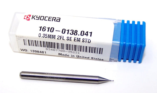 1610-0138.041 Kyocera 0.35mm Carbide 2 Flute End Mill 0.0138" Diameter 0.0410" Flute 1.5" Length 0.1181" Shank