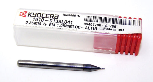 1610-0138L041 Kyocera 0.35mm Carbide 2 Flute End Mill ALTiN Coated 0.0138" Diameter 0.0410" Flute 1.5" Length 0.1181" Shank