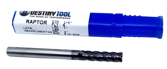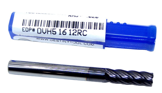 DVH51616RC Destiny Tool 1/4" Carbide 5 Flute End Mill .020" Radius TiAlN .250" Diameter 1.00" Flute 3.00" Length .250" Shank