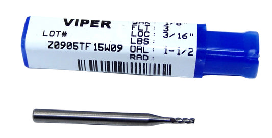 V30805 Destiny Tool 1/8" Carbide 3 Flute End Mill Viper SQ for Aluminum .125" Diameter .3125" Flute 1.5" OAL