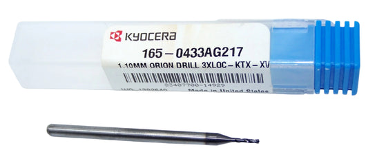165-0433AG217 Kyocera 1.10mm Carbide 2 Flute Drill High Performance .0433" Diameter .217" Flute 1.97" Length .118" Shank 142° Point Coated