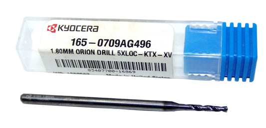 165-0709AG496 Kyocera 1.80mm Carbide 2 Flute Drill High Performance .0709" Diameter .496" Flute 2.36" Length .118" Shank 142° Point Coated