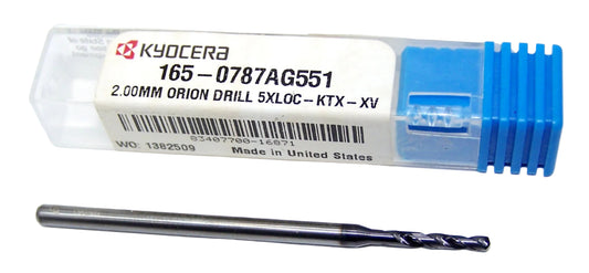 165-0787AG551 Kyocera 2.00mm Carbide 2F Drill High Performance .0787" Diameter .551" Flute 2.36" Length .1181" Shank Coated