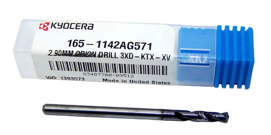 165-1142AG571 Kyocera 2.90mm Carbide 2F Drill High Performance .1142" Diameter .571" Flute 1.97" Length .1181" Shank Coated
