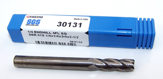 30131 Kyocera SGS 1/4" Carbide End Mill 4 Flute SQ .750"LOC General Purpose .2500" DIA