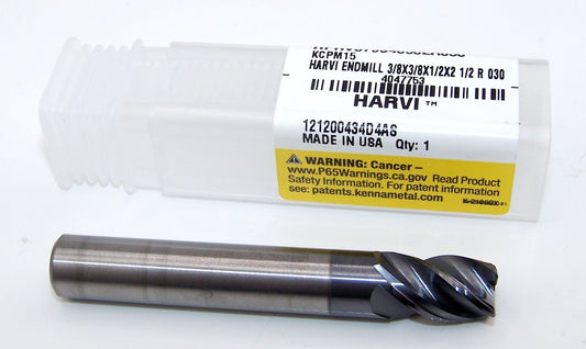 HPHV375S4050R030 KCPM15 Kennametal 3/8" Carbide 4 Flute End Mill .030" End Radius .375" Diameter 500" Flute 2.5" Length .250" Shank 4047753