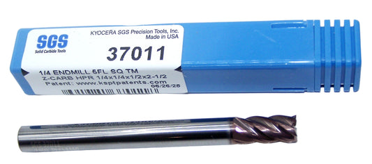 37011 Kyocera SGS 1/4" Carbide 5 Flute End Mill Square .250" Diameter 0.500" Flute 2.50" Length .250" Shank Z-Carb HPR