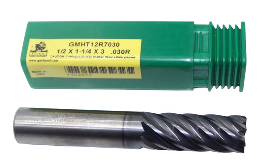 30207 Gorilla Mill 1/2" Carbide 7 Flute End Mill .030" Radius .500" Diameter 1.25" Flute 3" Length .500" Shank GMS2 Coat