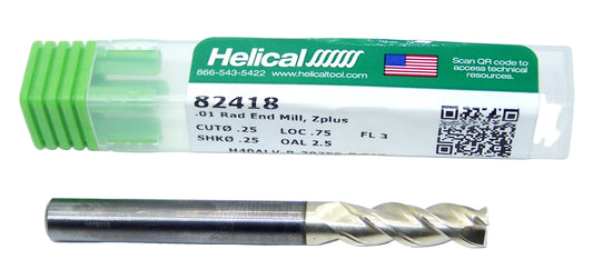 82418 Helical Solutions 1/4" Carbide 3 Flute End Mill 45° Helix for Aluminum .010" Radius .250" Diameter .750" Flute 2.5" Length .250" Shank H40ALV-R-30250-R.010