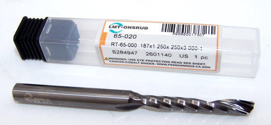 65-020 Onsrud 3/16" Carbide 1 Flute Upcut Router O Flute .1875" Diameter 1.25" Flute 3.00" Length .250" Shank
