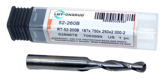52-260B Onsrud 3/16" Carbide 2 Flute Router End Mill Ball End .1875" Diameter .750" Flute 2.00" Length .250" Shank