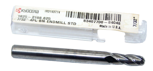 1825-2188.625 Kyocera 7/32" Carbide 4 Flute End Mill Ball End 0.2188" Diameter 0.625" Flute 2.5" Length 0.25" Shank