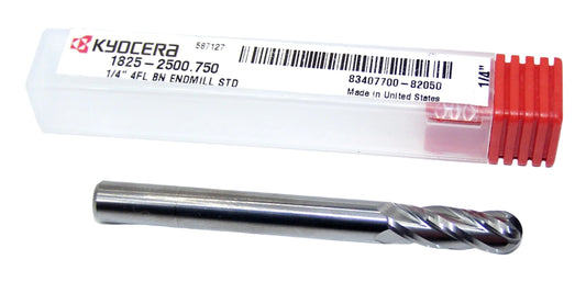 1825-2500.750 Kyocera 1/4" Carbide 4 Flute End Mill Ball End 0.2500" Diameter 0.750" Flute 2.5" Length 0.25" Shank