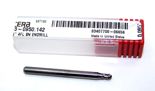 1835-0950.142 Kyocera .0950" Carbide 4 Flute End Mill Stub Flute Ball End .0950" Diameter .142" Flute 1.50" Length .125" Shank