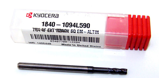 1840-1094L590 Kyocera 7/64" Carbide 4 Flute End Mill Extended Reach AlTiN .1094" Diameter .328" Flute 2.00" Length .125" Shank