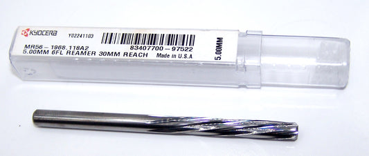 MR56-1968-118A Kyocera 5.00mm Carbide 6 Flute Reamer 1.18" Reach .1968" Diameter 1.18" Flute 2.95" Length .197" Shank