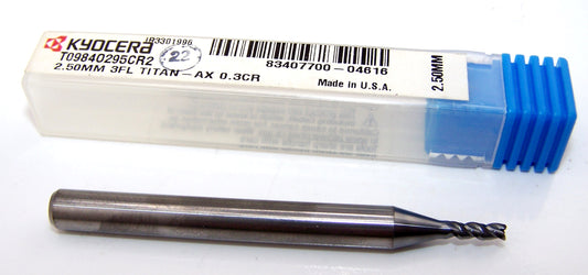 T0984O295CR2 Kyocera Microtools 2.50mm Carbide 3 Flute End Mill .0118" Radius Coated .0984" Diameter .295" Flute 2.50" Length .236"shank Titan Series
