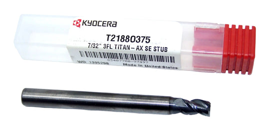 T2188O375 Kyocera Microtools 7/32" Carbide 3 Flute End Mill Stub SQ AX Coated 0.2188" Diameter 0.375" Flute 2.5" Length 0.25" Shank Titan Series