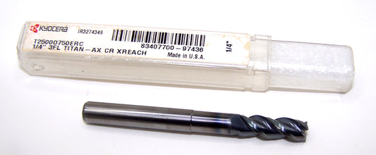 T2500O750ERC Kyocera Microtools 1/4" Carbide 3 Flute End Mill .015" Radius 1.25" Reach Coated .2500" Diameter .750" Flute 2.50" Length .250"shank Titan Series