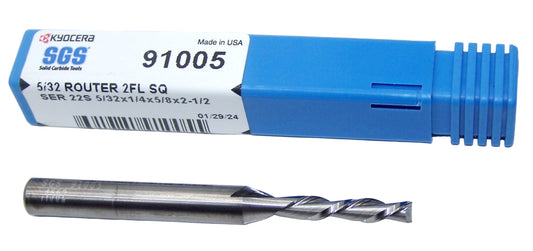 91005 SGS 5/32" Carbide 2 Flute Down Cut Router End Mill .1562" Diameter .625" Flute 2.50" Length .250" Shank