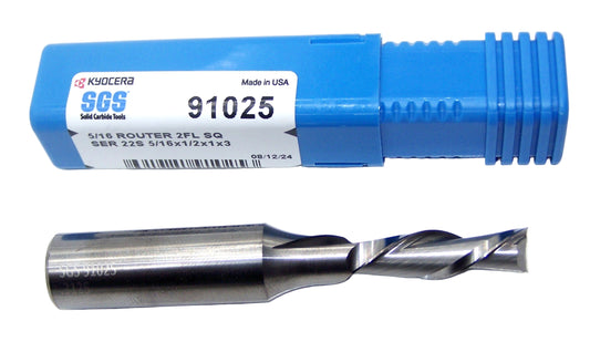 91021 SGS 5/16" Carbide 2 Flute Down Cut Router End Mill .3125" Diameter 1.00" Flute 2.50" Length .3125" Shank