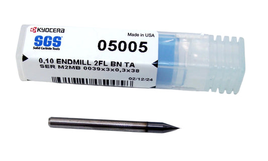 05002 Kyocera SGS 0.10mm Carbide Micro End Mill .0039" Diameter .0059" Flute 1.50" Length .1181" Shank