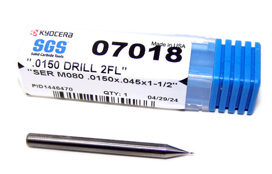 07278 Kyocera SGS #79 Carbide Drill 2 FLUTE 0.0145" Diameter .225" Flute 1.50" Length .125" Shank 130° Point