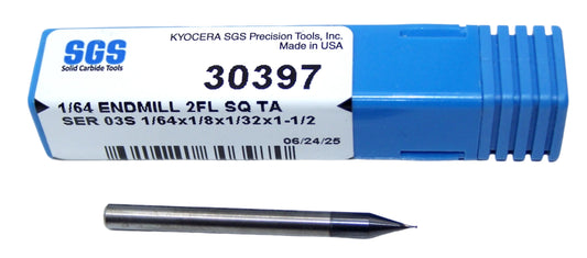 30397 Kyocera SGS 1/64" Carbide End Mill 2 Flute SQ AlTiN Coated .0156" DIA .031" Flute 1.50 Length .125" Shank