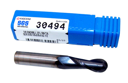 30494 Kyocera SGS 3/8" Carbide 2 Flute End Mill Ball End AlTiN Coated .375" Diameter 1.00" Flute 2.50" Length .375" Shank