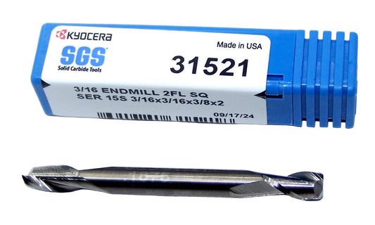 31521 Kyocera SGS 3/16" Carbide 2 Flute End Mill Square .1875" Diameter .375" Flute 2.00" Length .1875" Shank Double Ended