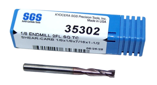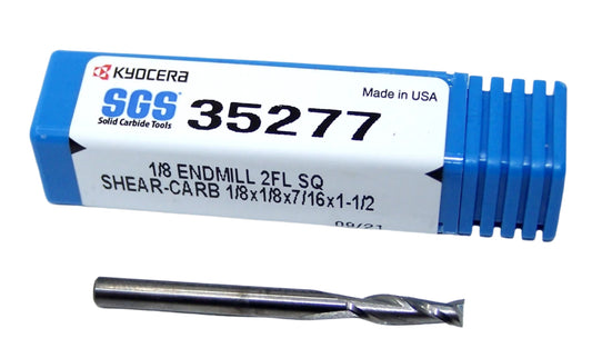 35277 Kyocera SGS 1/8" Carbide 2 Flute End Mill SHEAR-CARB .125" Diameter 0.437"Flute 1.50" OAL .125" Shank