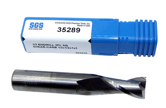 35289 Kyocera SGS 1/2"CARBIDE 2 Flute End Mill High Shear .5000" Diameter 1.00"Flute 3.0" OAL .500" Shank