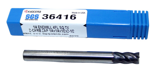 36416 Kyocera SGS 1/4" Carbide 4 Flute End Mill SQ .250" Diameter .500" Flute 2.50" Length .250" Shank Z-Carb AP