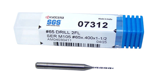 07312 Kyocera SGS #65 Carbide Drill 2 FLUTE 0.0350" Diameter .400" Flute 1.50" Length .125" Shank 130° Point