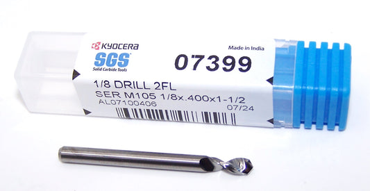07399 Kyocera SGS 1/8" Carbide Drill 2 FLUTE 0.1250" Diameter .400" Flute 1.50" Length .125" Shank 130° Point