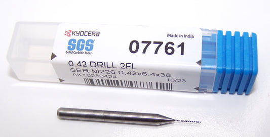 07761 SGS 0.42mm Carbide Drill 2 Flute 0.0165" Diameter .250" Flute 1.50" Length .118 Shank 130° Point M226