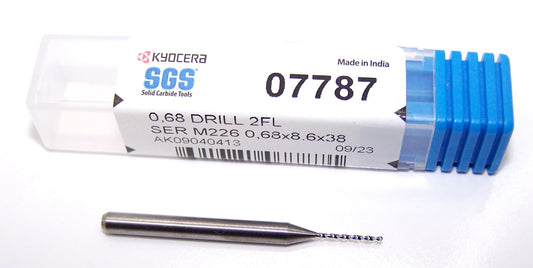 07787 SGS 0.68mm Carbide Drill 2 Flute 0.0268" Diameter .339" Flute 1.50" Length .118 Shank 130° Point M226
