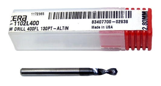 105-1102L400 Kyocera 2.80mm Carbide 0.1102" Diameter 0.400" Flute 1.5" Length 0.125" Shank 130° Point