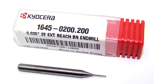 1645-0200.200 Kyocera #76 Carbide 2 Flute End Mill Extend Reach Ball End .0200" Diameter .060" Flute 1.50" Length .125" Shank .200" Reach
