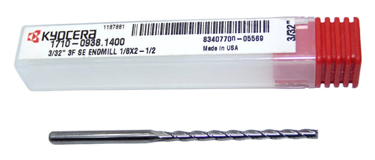 1710-0938.1400 Kyocera 3/32" Carbide 3 Flute End Mill 0.0938" Diameter 1.400" Flute 3.0" Length 0.125" Shank