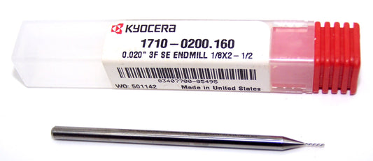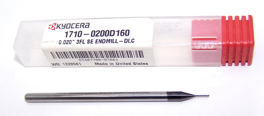 1710-0200.160 Kyocera 0.0200" Carbide 3 Flute End Mill 0.0200" Diameter 0.160" Flute 2.5" Length 0.125" Shank