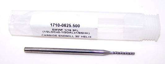1710-0625.750 Oliver Tool 1/16" Carbide 3 Flute End Mill Extended Flute .0625" Diameter .750" Flute 2.5" OAL .125 Shank