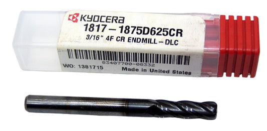 1817-1875D625CR Kyocera 3/16" Carbide 4 Flute End Mill 0.045" Radius DLC Coated 0.1875" Diameter 0.1875" Flute 2" Length 0.1875" Shank
