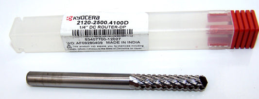 2120-2500.4100D Kyocera 1/4" Carbide Diamond Cut Router Burr Up Cut Drill Point .250"Diameter 1.00" Flute 3.00" Overall Length .250" Shank