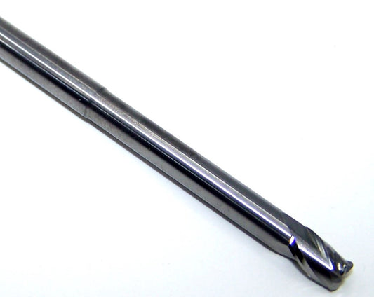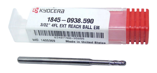 1845-0938.590 Kyocera 3/32" Carbide 4 Flute End Mill Ball End Extended Reach .590" Reach 0.0938" Diameter 0.281" Flute 2.0" Length 0.125" Shank