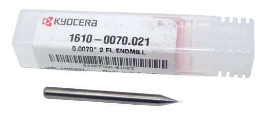 1610-0070.021 Kyocera 0.007" Carbide 2 Flute End Mill 0.0070" Diameter 0.0210" Flute 1.5" Length 0.125" Shank