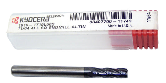 1810-1719L563 Kyocera 11/64" Carbide 4 Flute End Mill ALTiN Coated 0.1719" Diameter 0.563" Flute 2.0" Length 0.1875" Shank