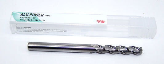 E5G95929 YG1 1/4" Carbide 3 Flute End Mill ALU-POWER HPC for Aluminum .250" Diameter 0.875" Flute 3.00" Length .250" Shank