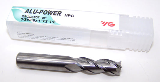 E5G95907 YG1 3/8" Carbide 3 Flute End Mill ALU-POWER HPC for Aluminum .375" Diameter 1.00" Flute 2.50" Length .375" Shank