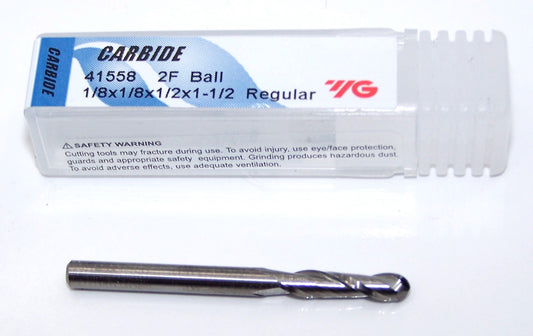 41558 YG1 1/8" Carbide 2 Flute End Mill Ball End .125" Diameter .500" Flute 1.5" Length .125" Shank